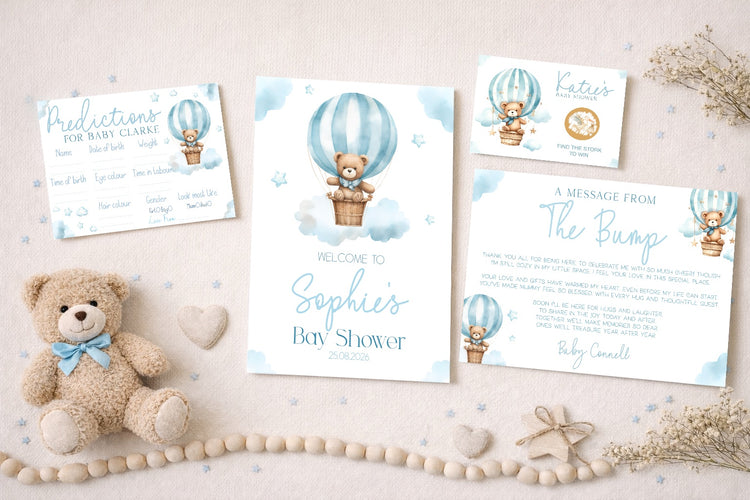 Message From Bump Baby Shower Sign (Personalised) - Teddy In Hot Air Balloon Neutral