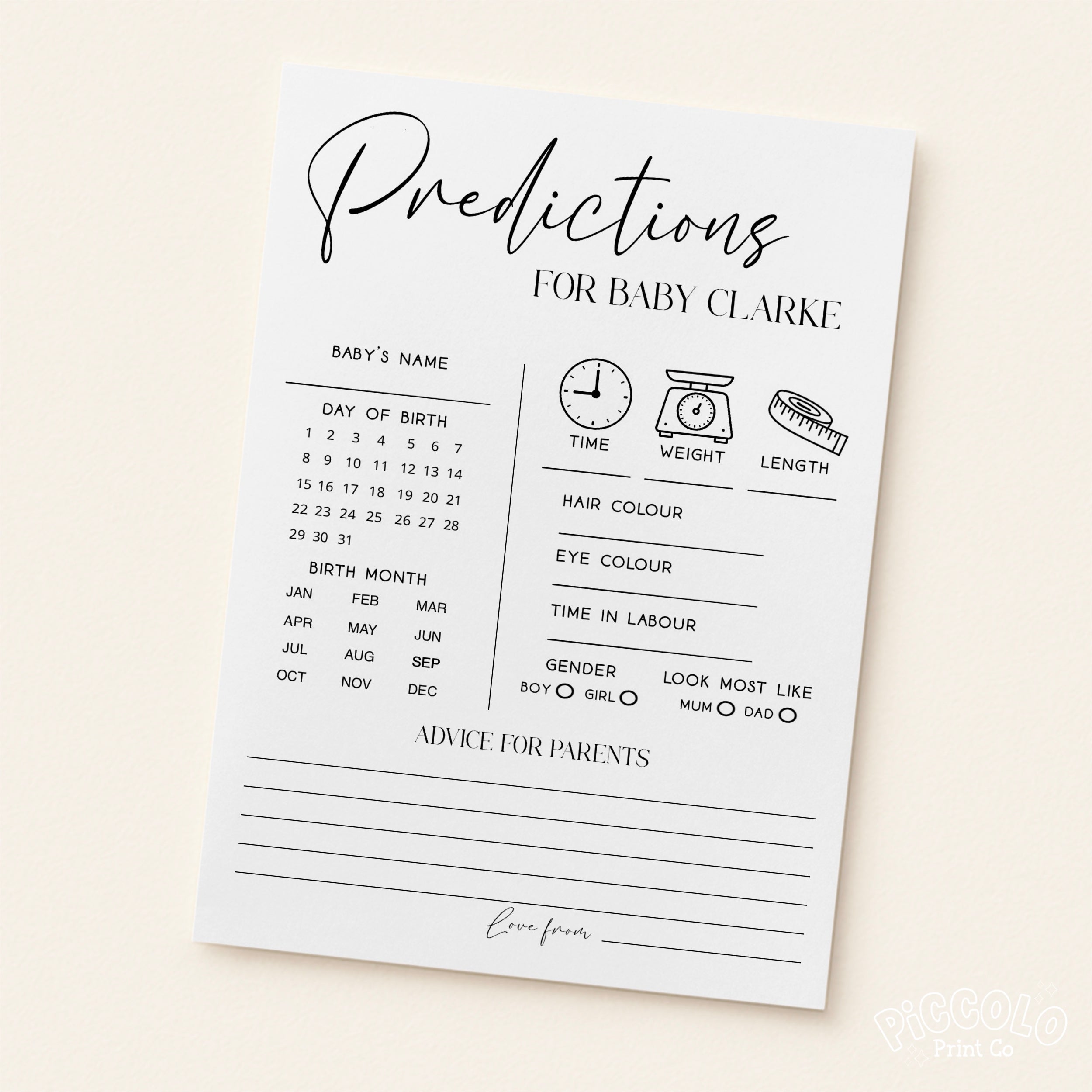 Add some fun to your baby shower with our personalised baby shower baby prediction cards.