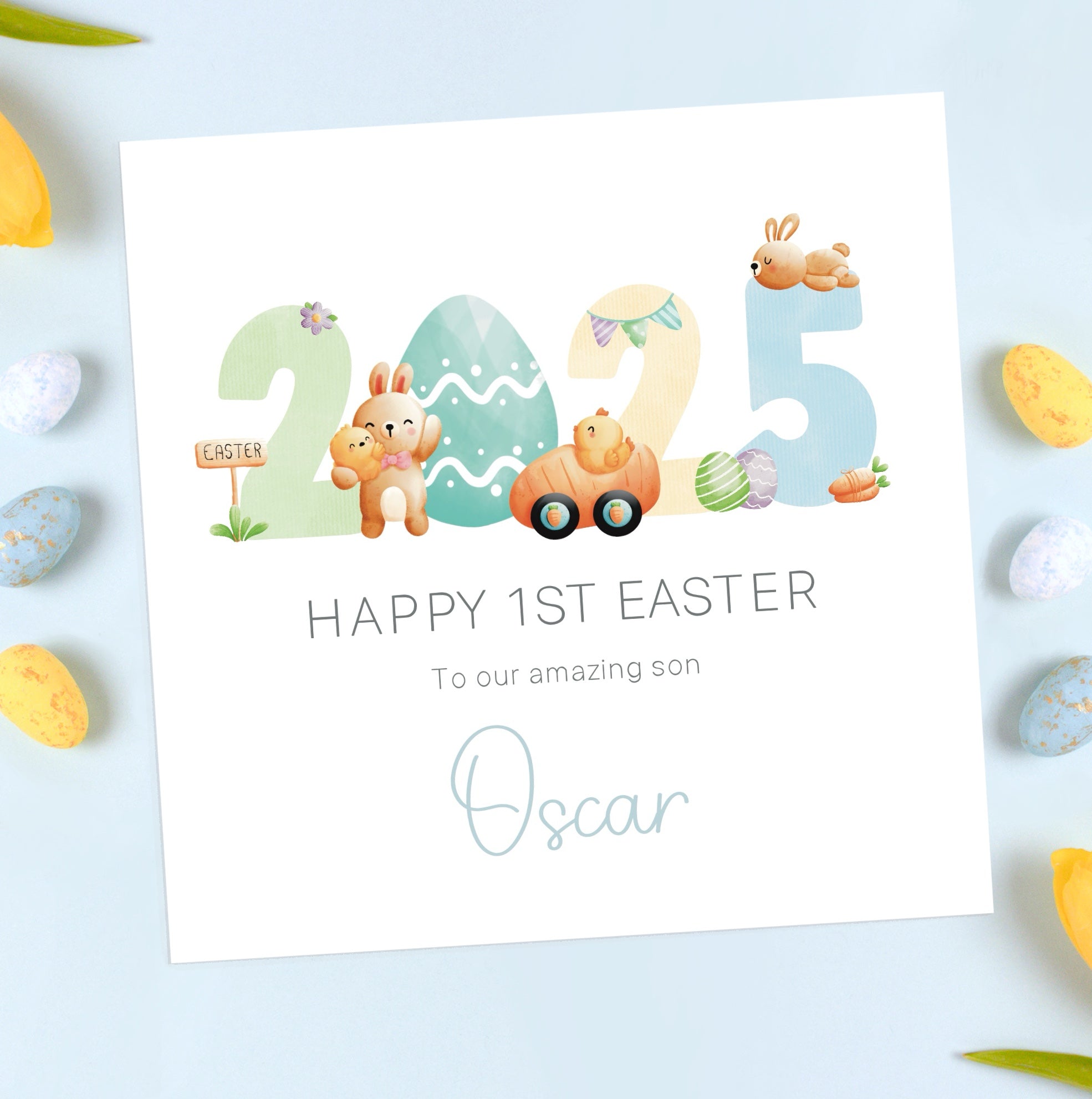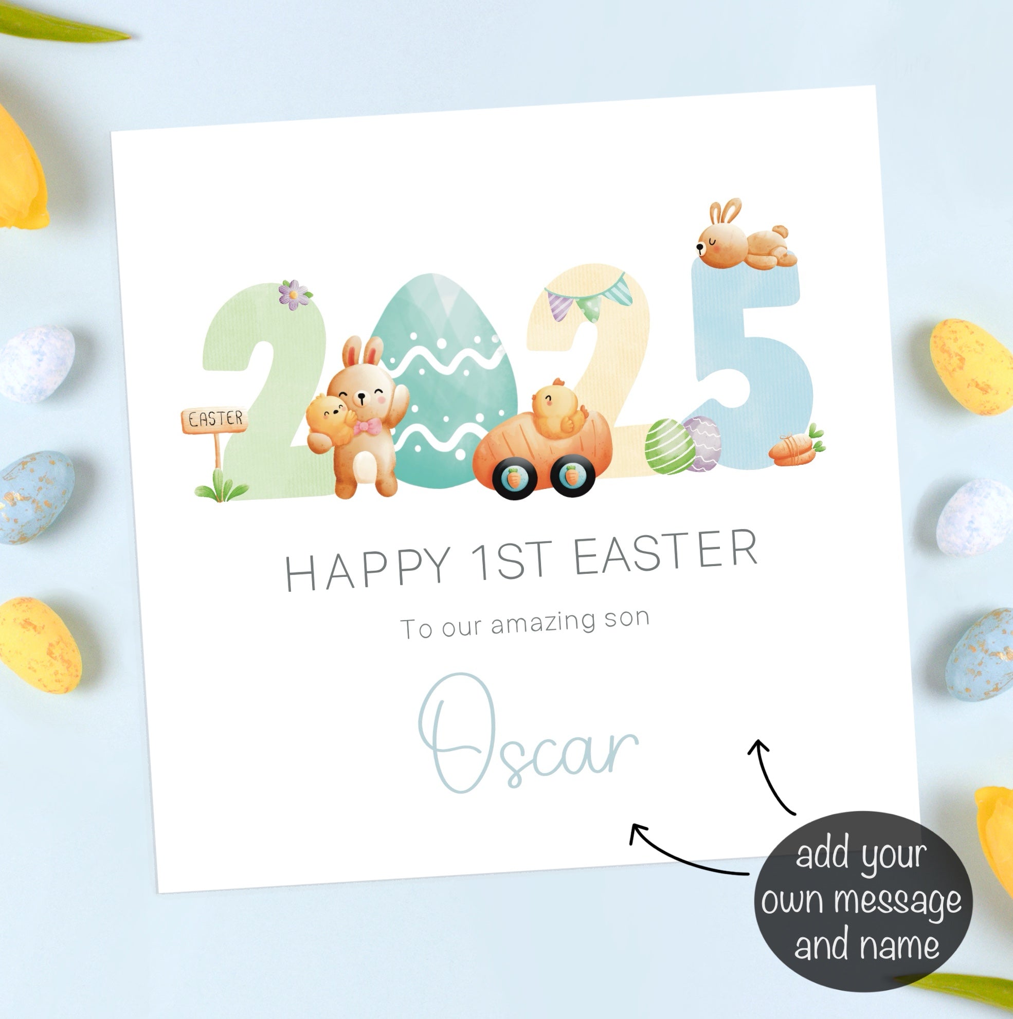 The card will read Happy 1st Easter.