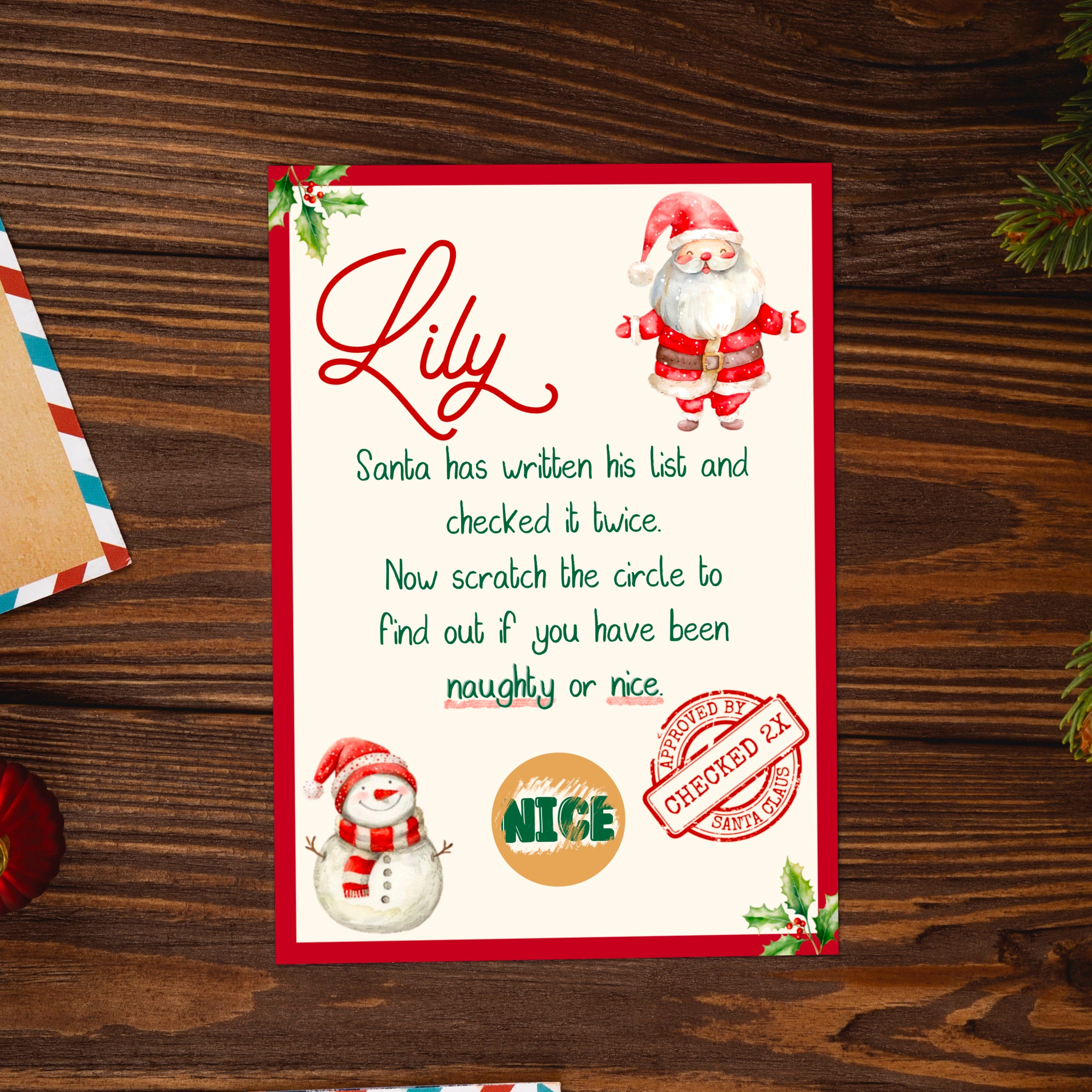 The perfect gift for kids, let them scratch to reveal if they have made Santas Nice list (scratch card will always reveal nice)