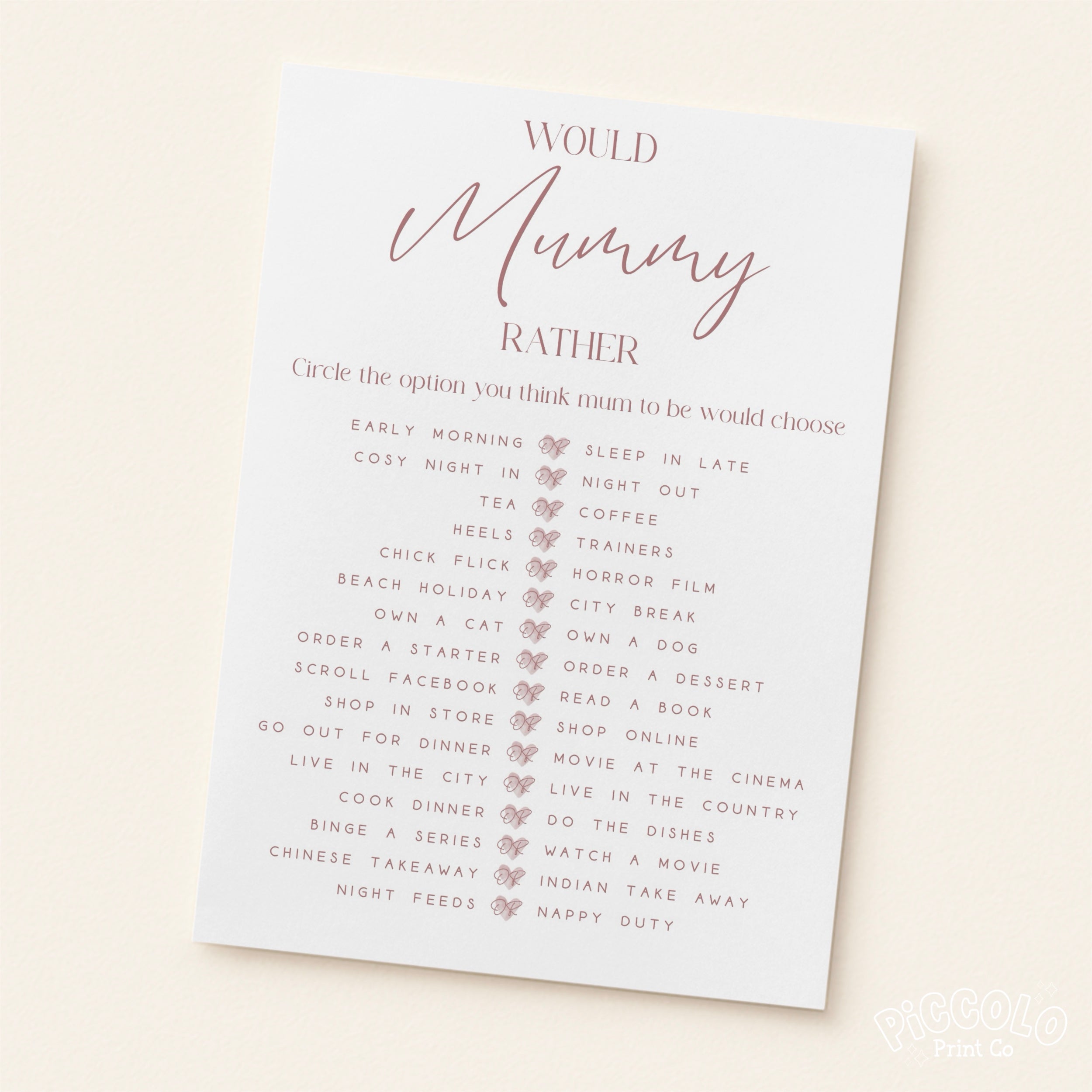 Add some fun to your baby shower with our personalised would she rather game cards.